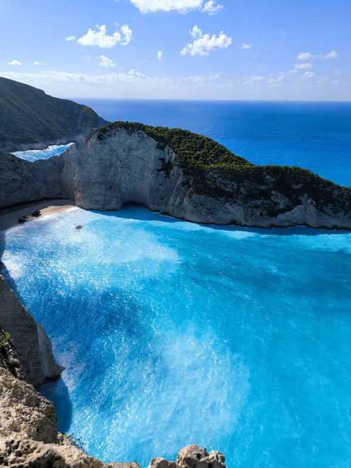 Tarde: Iremos até o mirante da praia Navagio Beach, cartão postal da ilha. essa praia já foi eleita a praia mais bonita do mundo. À tarde iremos para a linda praia de Porto Vromi.