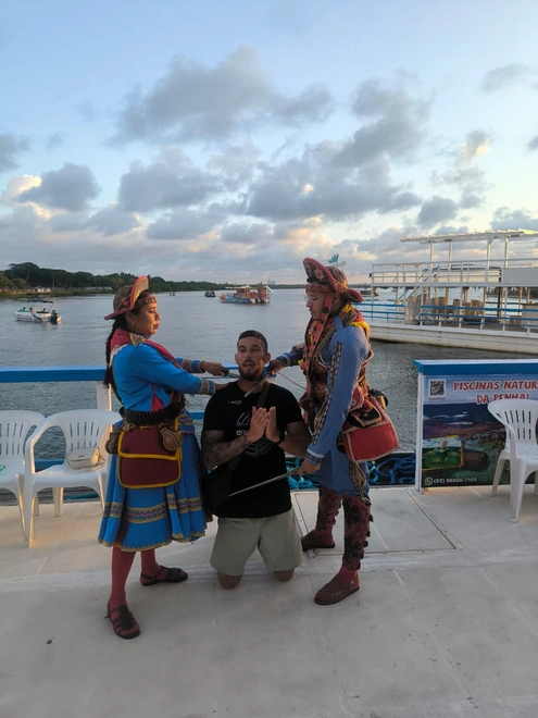 Noite: Pôr do Sol na Praia do Jacaré — o espetáculo mais emocionante do itinerário. Jurandy do Sax toca o Bolero de Ravel ao vivo enquanto o sol se dissolve nas águas douradas do Rio Paraíba. Um momento emocionante e inesquecível, de arrepiar a alma.