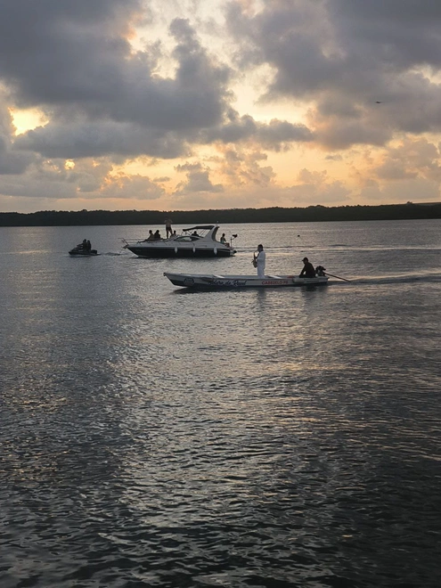Manhã: Embarque no barco para a Ilha de Areia Vermelha (Ponta de Campina, Cabedelo). O fenômeno natural mais fotogênico do litoral paraibano: um imenso banco de areia de cor avermelhada emerge do oceano apenas na maré baixa, criando piscinas naturais rasas e cristalinas ao redor.